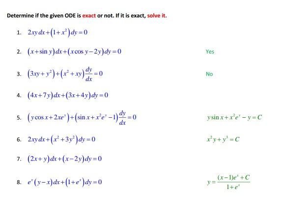 Lesson 6 Exact Equations Determine Whether Or Not Each Of